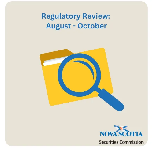 Our latest regulatory review looks at all regulatory releases and notices issued by the Nova Scotia Securities Commission and the Canadian Securities Administrators (CSA) since August. In case you missed any of the releases or notices issued over that time, here is a quick rundown on what they meant for issuers, investment firms and investors with links to the documents, where you can find the full details.